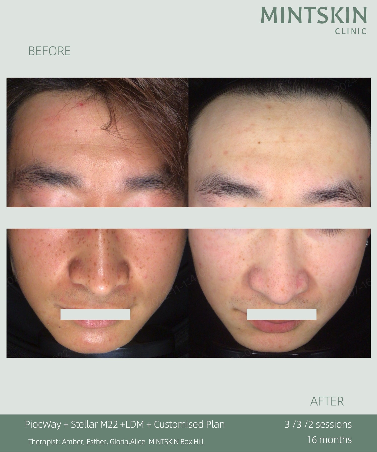 Our treatment results have be meticulously recorded. This will be made available through an external link, which you can access using the tag labels to find the results you may interested to know. All information is obtained with the consent of our clients before publication, and the copyright belongs to MINTSKIN.